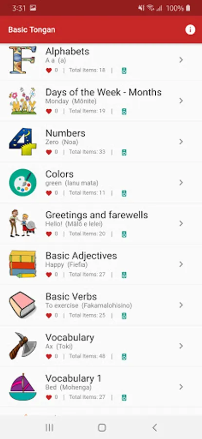 Learn the Tongan language and use this application to learn everyday Tongan words.