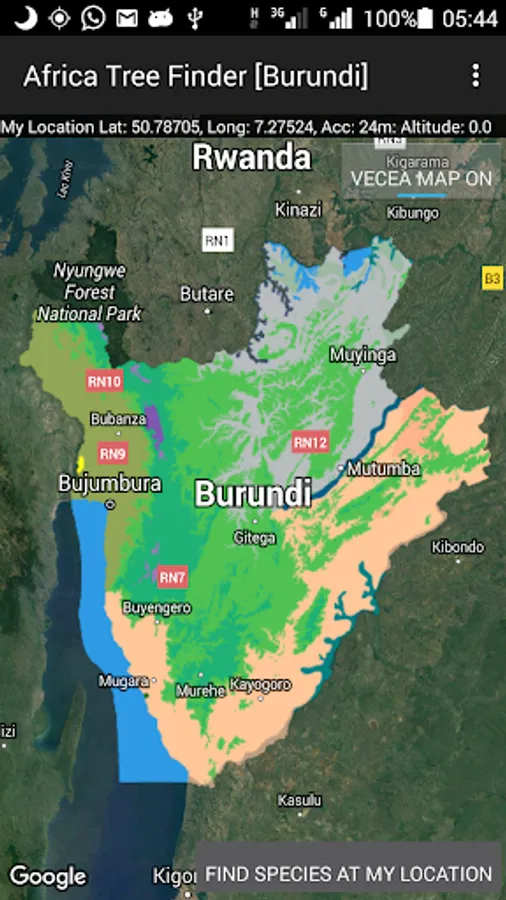 The Africa Tree Finder App enables you to find suitable tree species at your location. Currently the app can only be used within East Africa Country of Burundi, other countries to be included soon. The App works by either allowing you to tap on the "SPECIES FINDER" button on the map, after which you will be directed to the next screen where you will select tree species for a particular use or you can tap directly on any area of the map covered by the tilled VECEA map, after which a marker will appear showing the current vegetation type, when you tap on the maker you will be directed to the major use screen.