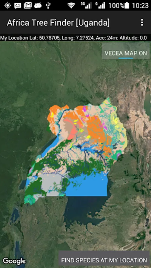 The Africa Tree Finder App enables you to find suitable tree species at your location. Currently the app can only be used within East Africa Country of Uganda, other countries to be included soon. The App works by either allowing you to tap on the "SPECIES FINDER" button on the map, after which you will be directed to the next screen where you will select tree species for a particular use or you can tap directly on any area of the map covered by the tilled VECEA map, after which a marker will appear showing the current vegetation type, when you tap on the maker you will be directed to the major use screen.