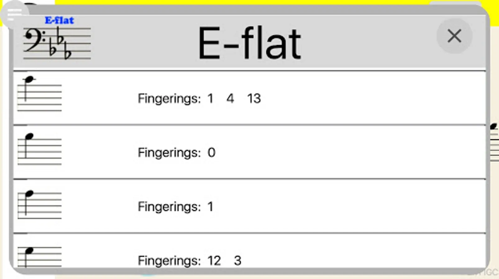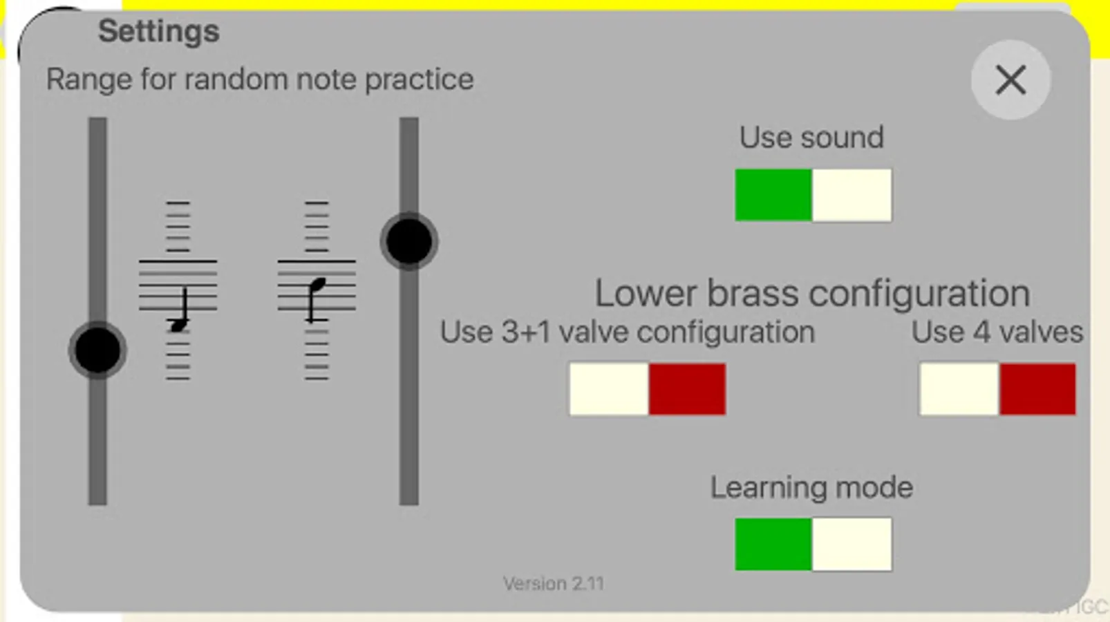 Fingering practice for trumpet, euphonium/baritone, tuba, French horn, trombone.