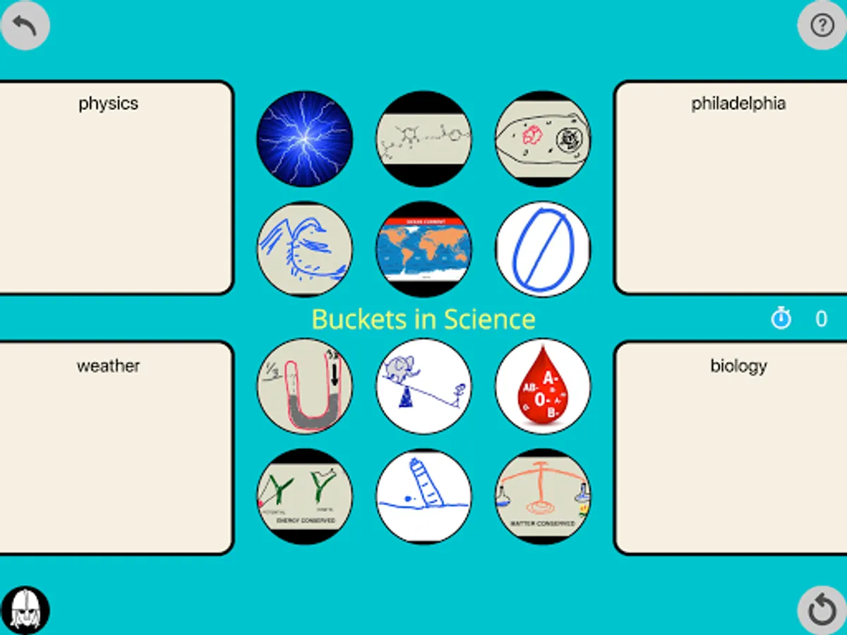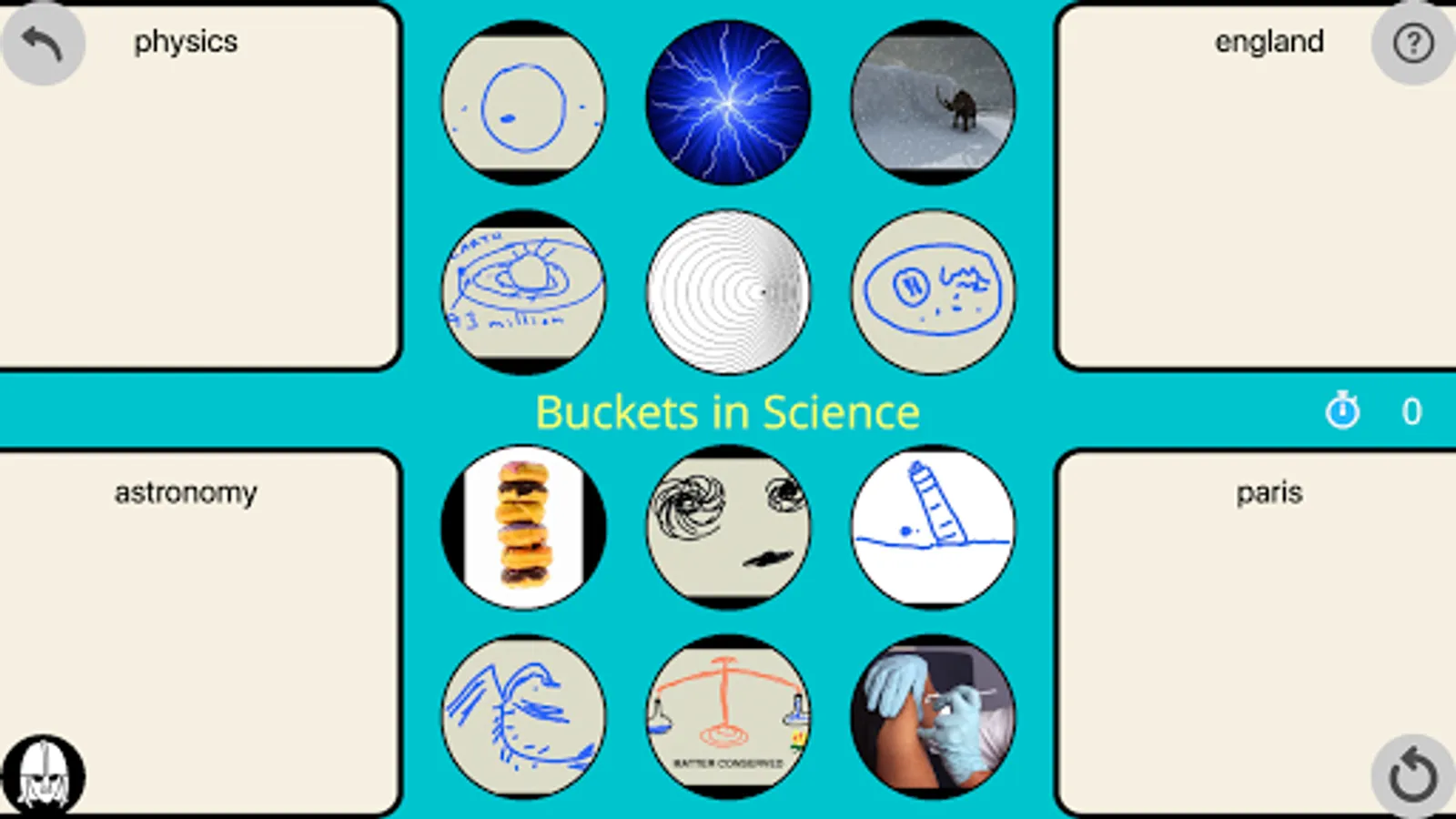 Buckets is a categories game, with 2 levels of play. Try to make the largest categories. Lots of help and hints available.