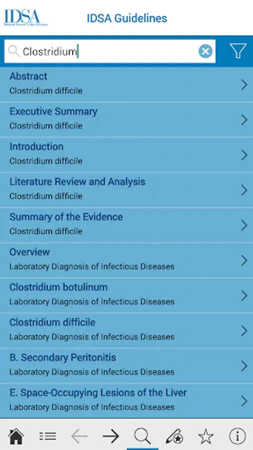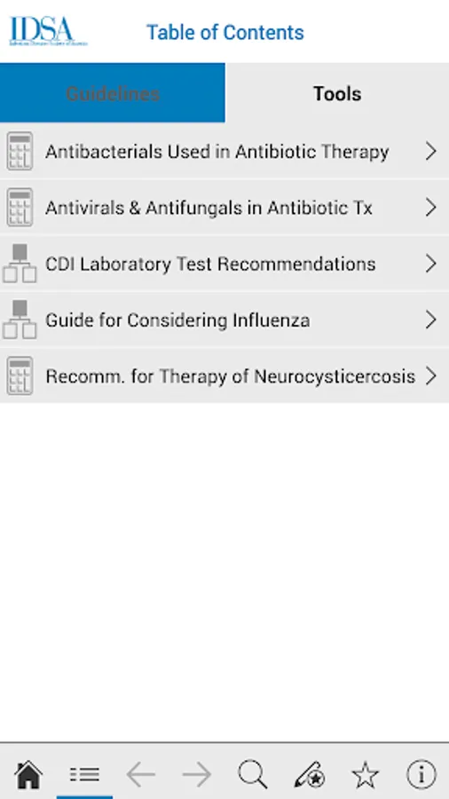 Access the Infectious Diseases Society of America (IDSA) clinical guidelines app anytime, anywhere. Download the app today and stay up-to-date on IDSA clinical guidelines, interactive tools, and new resources. The app contains features to search guidelines, bookmark important pages and take notes on key information. Visit the IDSA app for new guidelines that are released throughout the year and new updates to existing guidelines.