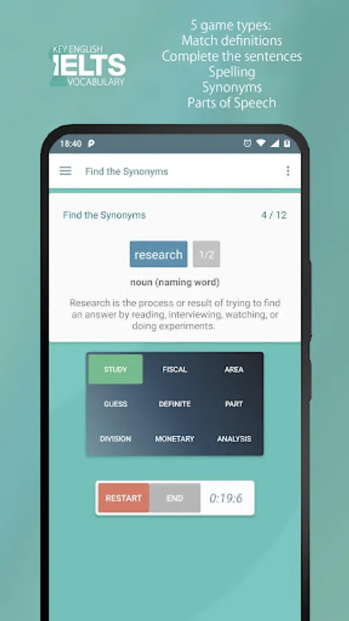 • Multiple choice, spelling, synonym and grammar games give you confidence!