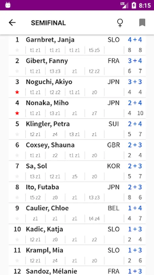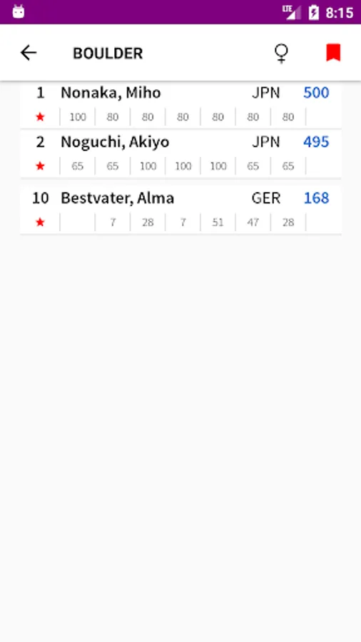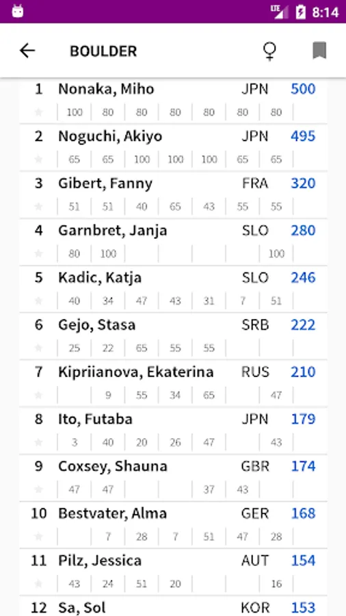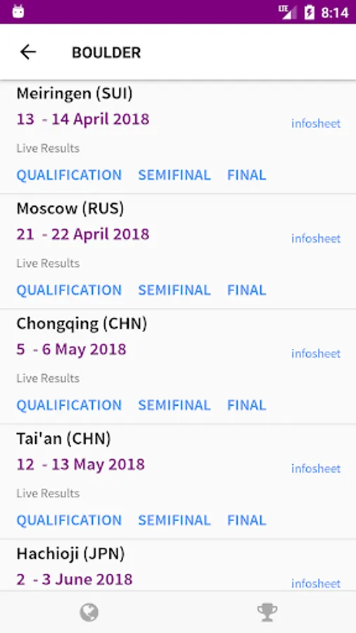 Re-written from the ground up. Includes the calendar and results for boulder, lead and speed; adds the world and current cup rankings, plus information sheet links where available