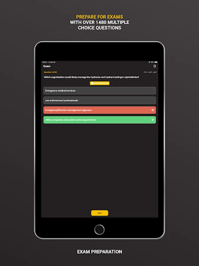 Use the 1,480 IFSTAⓇ-validated Exam Prep questions to confirm your understanding of the content in the Essentials of Fire Fighting, 7th Edition, Manual. The Exam Prep covers all 27 chapters of the Manual. Exam Prep tracks and records your progress, allowing you to review your exams and study your weaknesses. In addition, your missed questions are automatically added to your study deck. This feature requires an in-app purchase. All users have free access to Chapter 1.