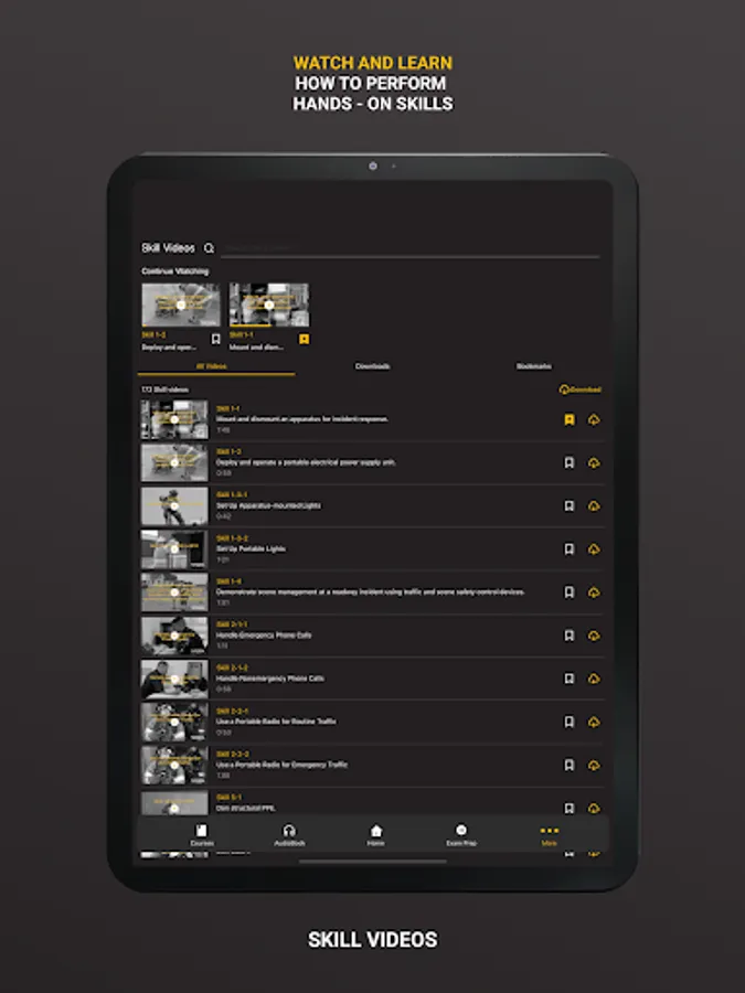 Prepare for the hands-on portion of your class by watching 159 Skills Videos covering Firefighter I, Firefighter II, Hazardous Materials Awareness, and Hazardous Materials Operations. Each Skills Video contains the steps required to pass the skills. This feature allows you to bookmark and download specific skills videos and view the steps for each skill. This feature is FREE for all users.