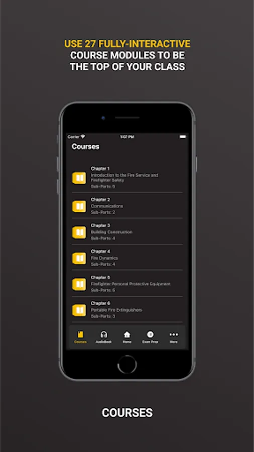 Reinforce the content in the Essentials of Fire Fighting, 7th Edition, Manual by completing all 27 course chapters. This requires an in-app purchase. This course features self-paced, interactive content to help with supplemental study of the Manual's learning objectives. All users have free access to Chapter 1.