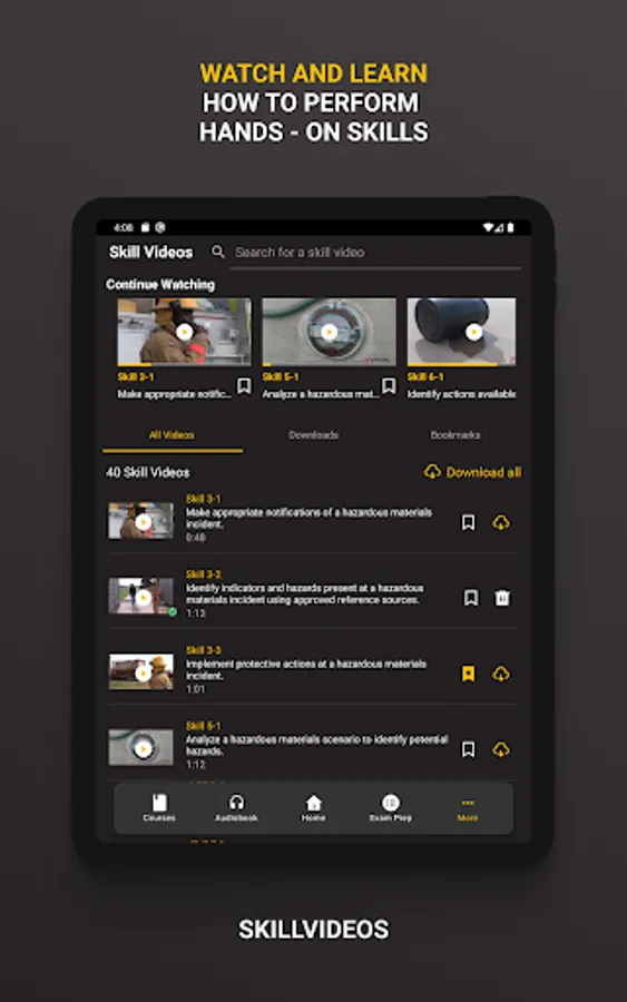 * Prepare for the hands-on portion of your class by watching 40 skill videos covering Hazardous Materials Awareness and Operations. Each skill video contains the steps required to pass the skill.
