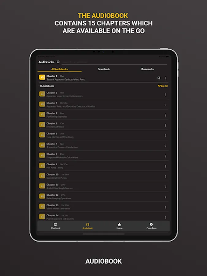 Purchase the Pumping and Aerial Apparatus Driver/Operator Handbook, 3rd Edition, Audiobook through the App. All 20 chapters are narrated in their entirety for 18 hours of content. Features include offline access, bookmarks, and the ability to listen at your own speed. All users have free access to Chapter 1.