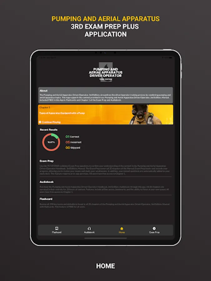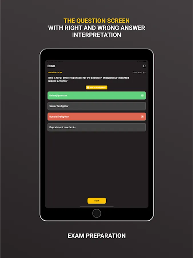 Use the 957 IFSTAⓇ-validated Exam Prep questions to confirm your understanding of the content in the Pumping and Aerial Apparatus Driver/Operator Handbook, 3rd Edition, Manual. The Exam Prep covers all 20 chapters of the Manual. Exam Prep tracks and records your progress, allowing you to review your exams and study your weaknesses. In addition, your missed questions are automatically added to your study deck. This feature requires an in-app purchase. All users have free access to Chapter 1.