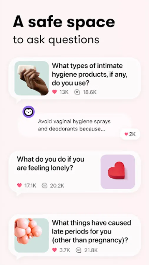 - Secret Chats: Safely discuss intimate topics like fertility, birth control, discharge, and irregular cycles. Engage in anonymous conversations with other users and receive support from the global community on women's health