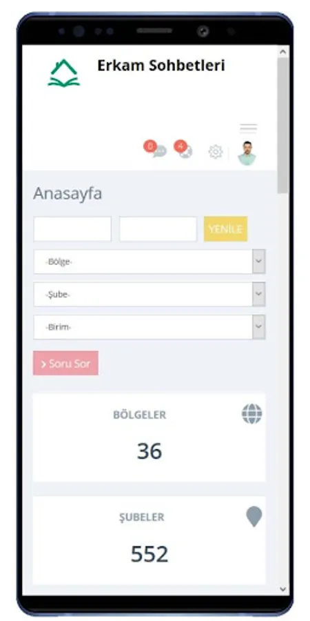 Erkam Automation System: Erkam Chat Rings in branches by displaying the chat on the mobile phone to read and chat information about the system allows you to instantly record. In addition, branches and regions through the system; As the Main Organization, Women's Organization, Women's Youth Organization and Education Presidency, it helps to follow the public targets and realized targets instantly with statistics.