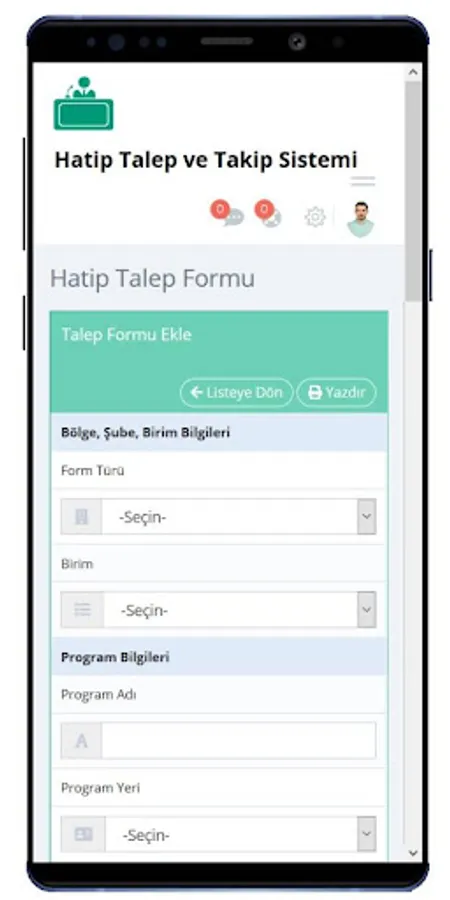 In order to facilitate the organization of the programs and speed up the demand response process, the orator automation system allows to realize this purpose in a few steps. After pressing the “Send Orator Request” button, the basic information filled in is recorded and the information is immediately sent to the district leader Irşad. The request reached to the head office after the evaluation of the regional leader Irşad is evaluated here and evaluated immediately by reaching the branch / region through the system again.