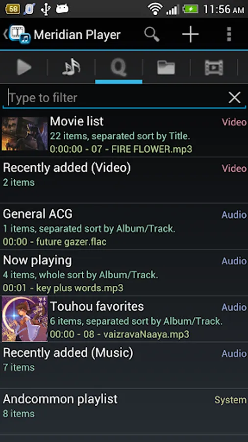 PlayQ rather than playlists, can handle videos, musics, and their MIXTURE. Also, you can put a folder, an artist, an album or like that into a PlayQ.