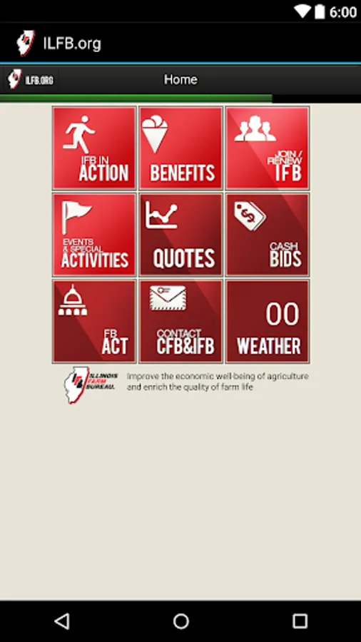 This application is designed for the working Farmer in Illinois, providing up-to-date decision making information regarding commodity futures and cash market prices, weather information, legislative updates and alerts, contact information, and membership benefit and activitiy information from the Illinois Farm Bureau. This business tool will quickly and easily put vital information into farmers’ hands allowing them to make faster and better informed decisions.