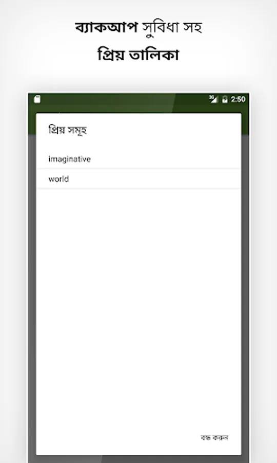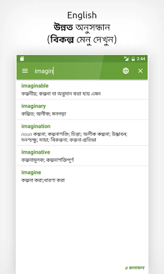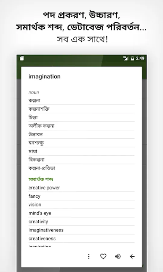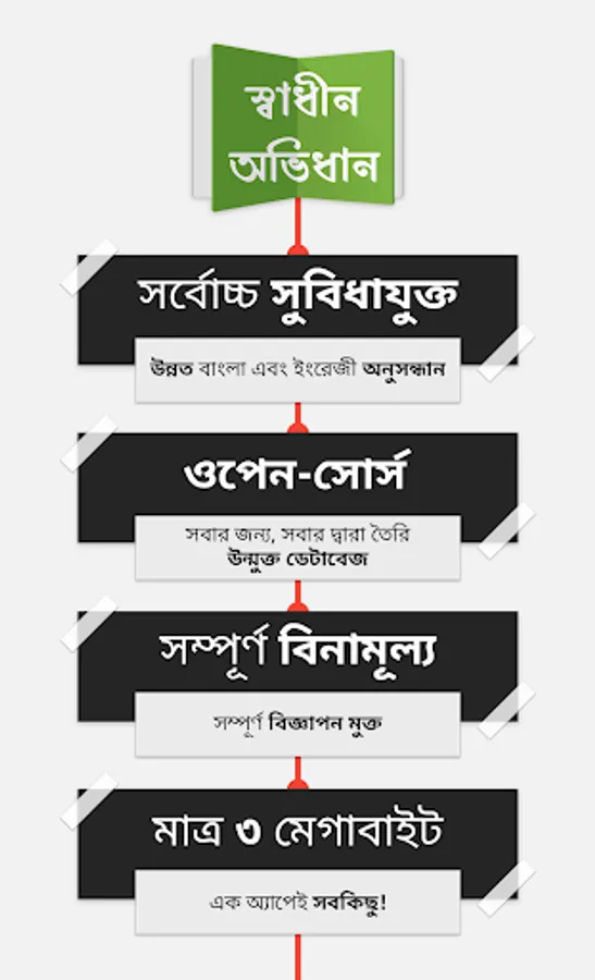 Shadhin Ovidhan Android is the Android version of popular Shadhin Ovidhan (http://j.mp/IWSOstable). It’s the only Bengali-English-Bengali Dictionary which is full of features, and regularly updated. It’s free, Open-source, even Ads free.