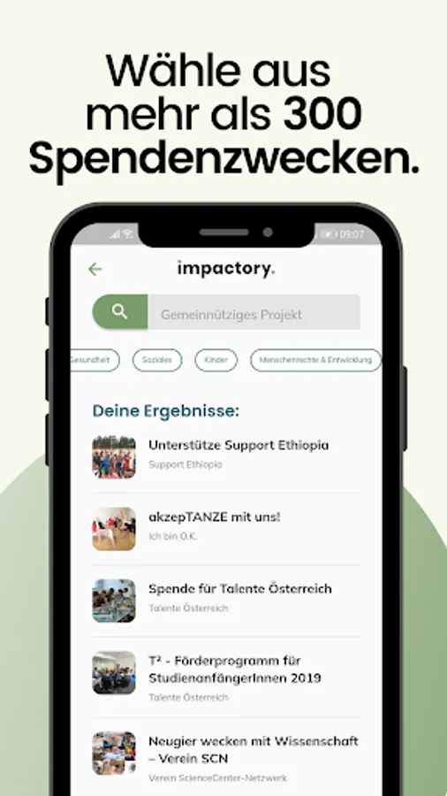 Find out about non-profit organizations and projects that are important to you in the impactory app. Because it is very important to us that you know exactly where your money is going when you donate. Our Impact Stories are also a great place to be inspired. There you can read stories about small and big everyday heroes. There we report on things that are currently on our minds, we conduct interviews with people who inspire us and give you a glimpse behind the scenes.