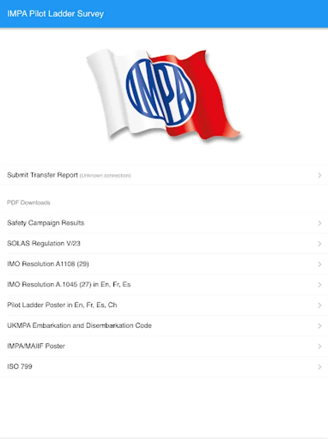 With the IMPA Pilot Ladder Survey App you'll be able to quickly access the IMPA safety campaign to submit your transfer report.