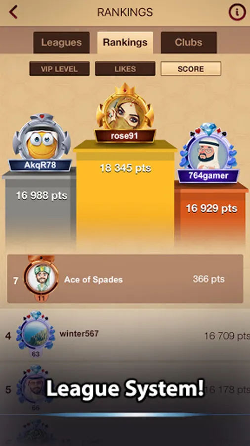 • League system to better rank players of all skill levels.