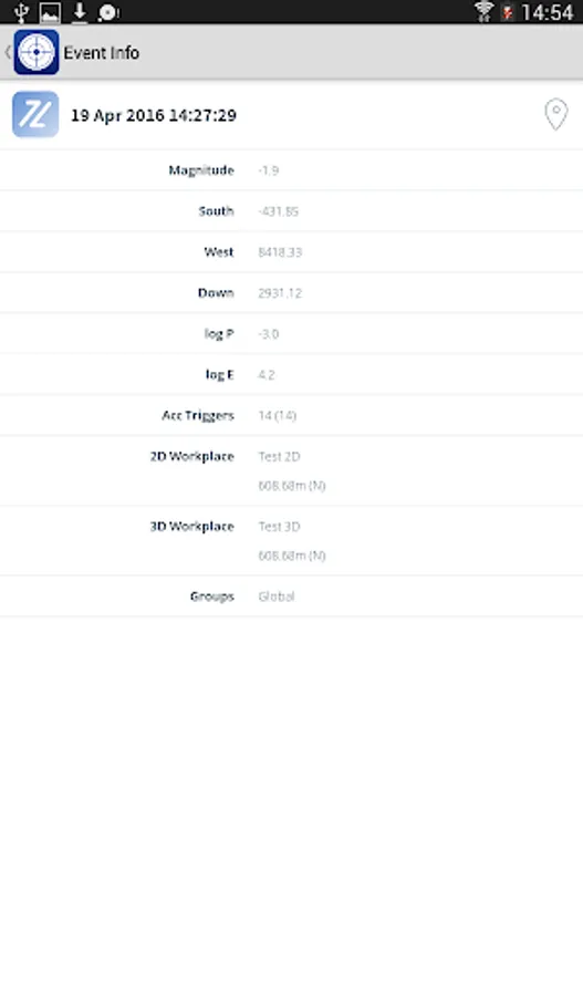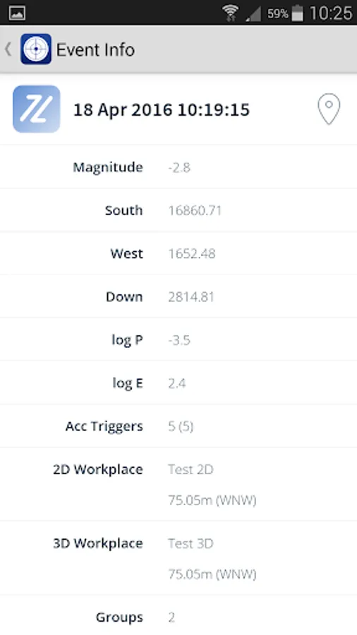 * View detailed event information, including the number of seismic stations triggered, location, source parameters, the nearest 2D and/or 3D workplace and the association group it belongs to