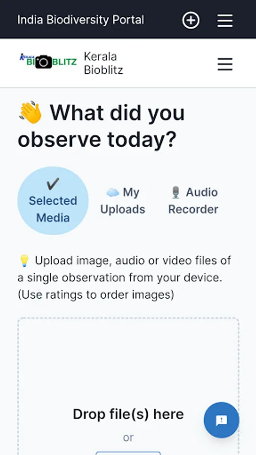 Documentation of Biodiversity is the foundation of any conservation action as many species of flora and fauna disappear from Earth each day forever. Here, Kerala Bioblitz provides an opportunity for the students/citizens to document the biodiversity of their surroundings and identify them with the help of India Biodiversity Portal. Documentation methods include photography, videography, and sound recording.