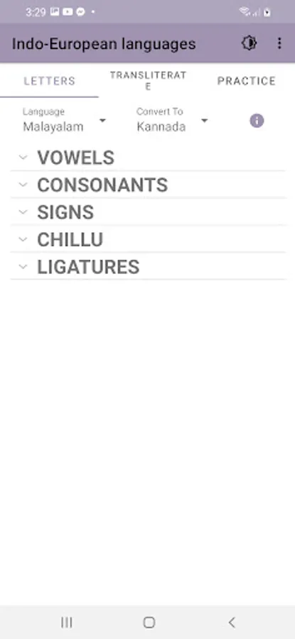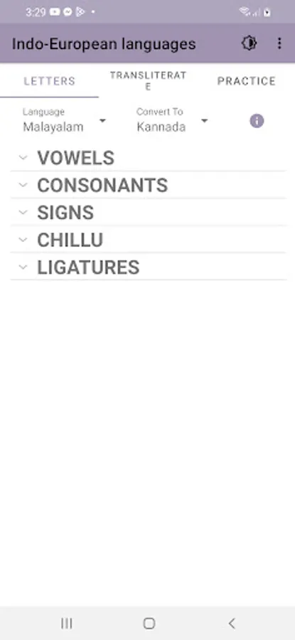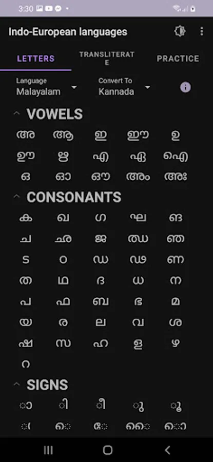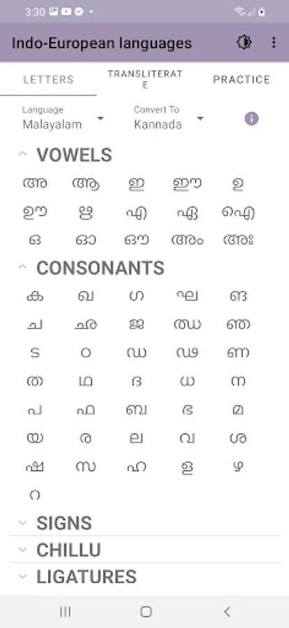 Indo-European languages app offers you learning interface to master Indo, Malayalam and Kannada languages.