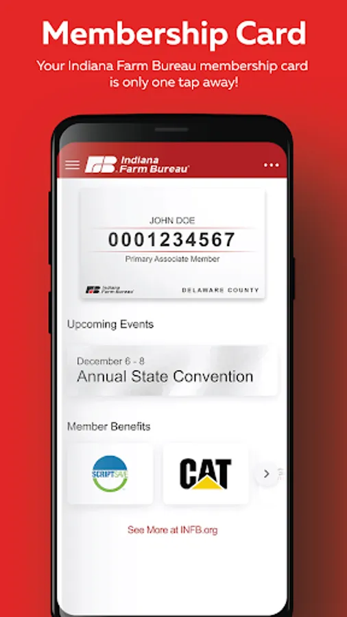 The Indiana Farm Bureau mobile app provides the convenience of having your membership card, event information and member benefits all in one easy-to-use application.