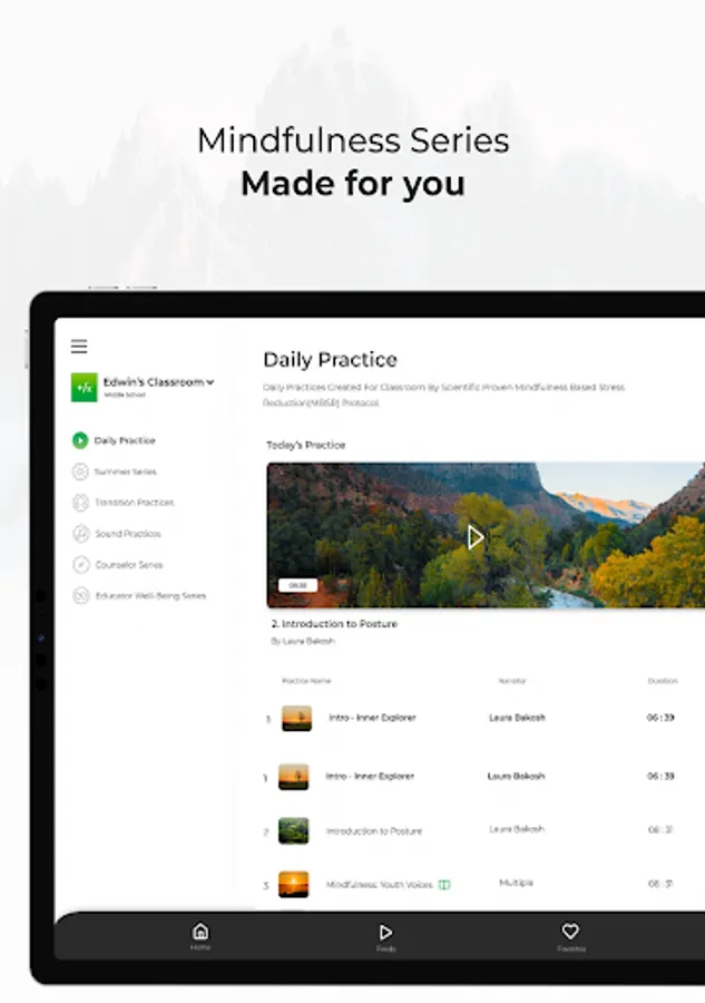 • Experience mindfulness on any device with Inner Explorer Classroom App's specially designed iPad and mobile versions. Enjoy a seamless experience across all platforms, with your progress synced automatically. Whether you're at home, at school, or on the go, you can continue your mindfulness practice without missing a beat.