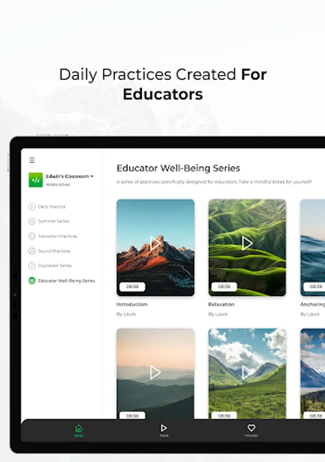 • Educator Wellbeing Series Designed specifically for educators to use whenever they choose to reduce their stress and feel appreciated.