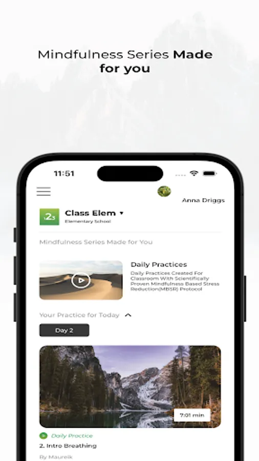 • Our app features an exclusive Tune In feature that allows you to invite parents and caregivers to listen in real-time to the mindfulness practices taking place in your classroom. This feature provides transparency and bridges the gap between school and home, giving families a deeper insight into their child's mindfulness practice.