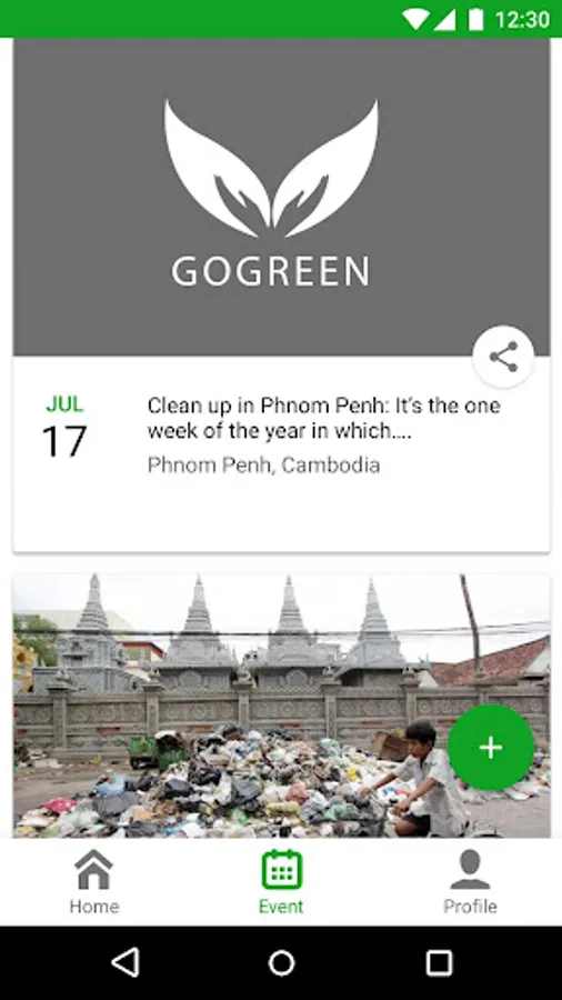 GoGreen is an application that allows user to involve in helping the city clean by creating event to clean the city together.User can see the location where there is clean or unclean via the application.