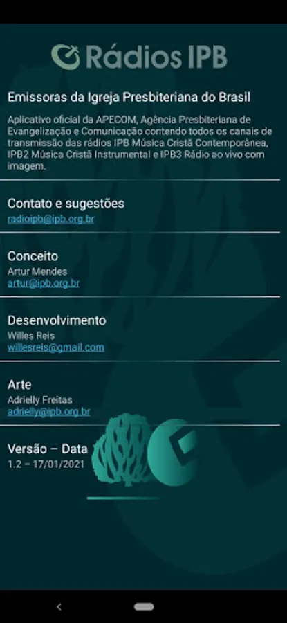 Official application of APECOM, Presbyterian Agency for Evangelization and Communication containing all transmission channels of the radio stations IPB Christian Music Contemporary, IPB2 Christian Music Instrumental and IPB3 Radio live with image.