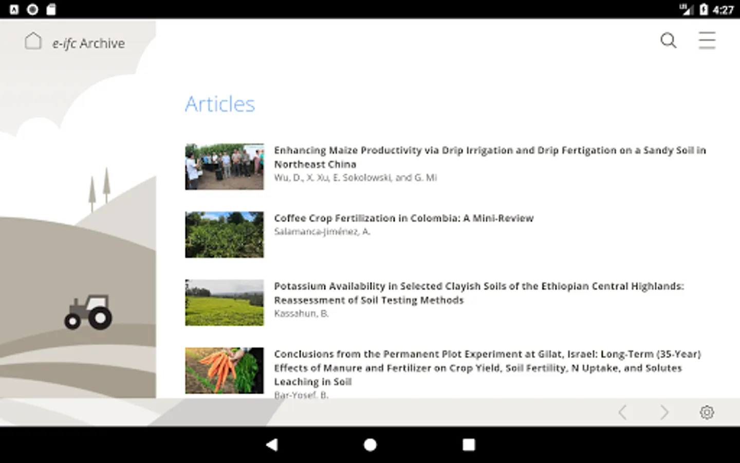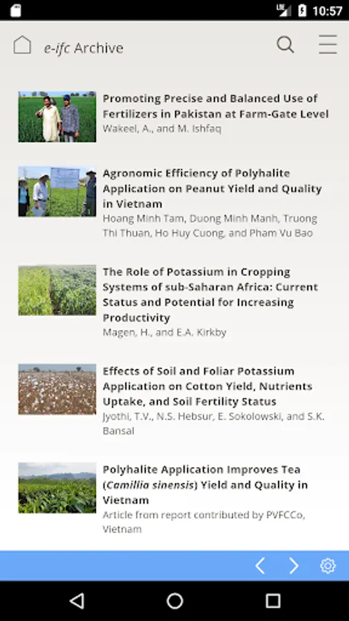 The articles are from the e-ifc (electronic International Fertilizer Correspondent) which is published by the IPI (International Potash Institute). The app lets you keep up to date with the latest scientific research related to Potash and its use in agriculture worldwide.