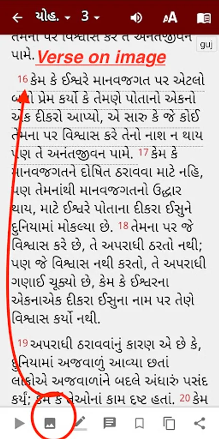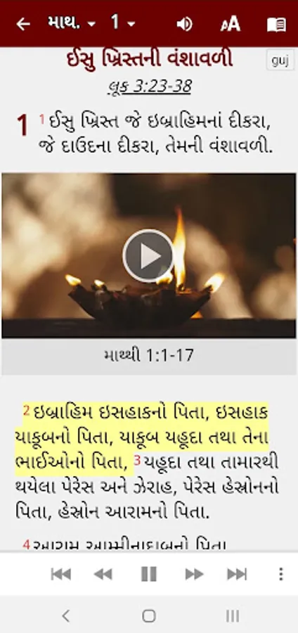 Read and meditate the WORD of GOD in Gujarati using the Gujarati Bible app. The Gujarati Bible app supports almost all Android devices. We have made this app available absolutely free for you to download and use. Audio for the New Testament has been integrated into the app. The text will highlight verse by verse when you tap the 'Play' button. The Parallel English & Hindi Bibles is another outstanding feature in the Gujarati Bible app. Gujarati, English and Hindi Bible verses can be displayed in two-pane or verse-by-verse layout.