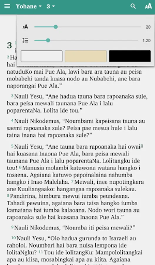 This is a Napu/Pekurehua Bible app for Android. This version carries the entire New Testament published by the Indonesian Bible Society and part of the Old Testament. Available 100% free.