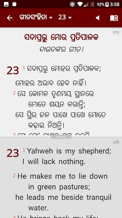 Read and meditate the WORD of GOD in Odiya using the Odiya Bible app. Odiya Bible app supports almost all Android devices. We have made this app available absolutely free for you to download and use. Audio for the Old and New Testament has also been integrated into the app. It has been synchronized with the text and will automatically highlight the verse for you when you tap the play button. The Parallel English & Hindi Bibles are another outstanding feature in the Odiya Bible app. Odiya, English and Hindi Bible verses can be displayed in two-pane or verse-by-verse layout.