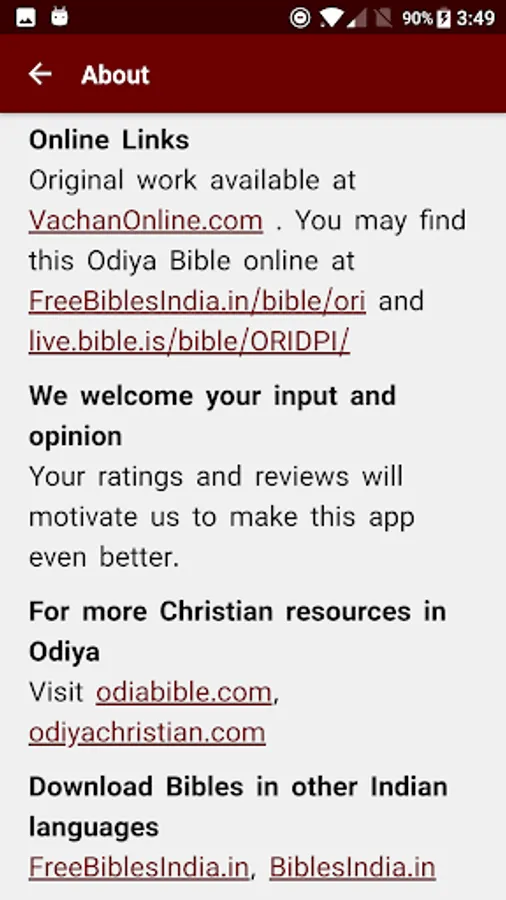 Compatibility: Odiya Bible is optimized for Android 12.0 (Snow Cone). However, it should run well on devices with versions 4.1 (Icecream Sandwich) and higher.