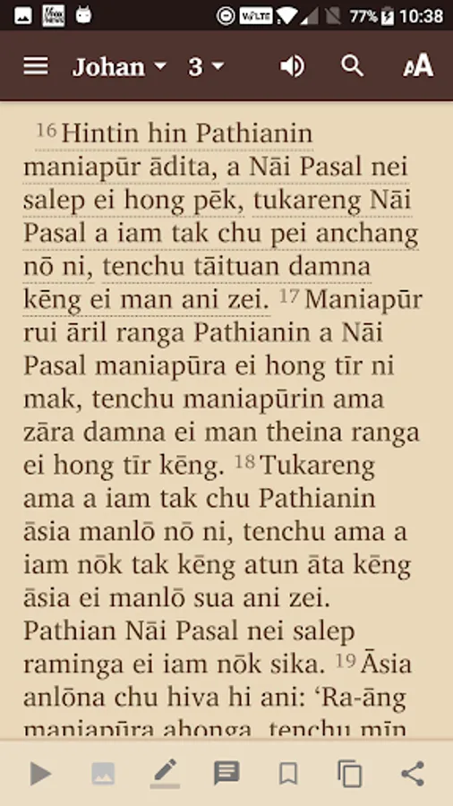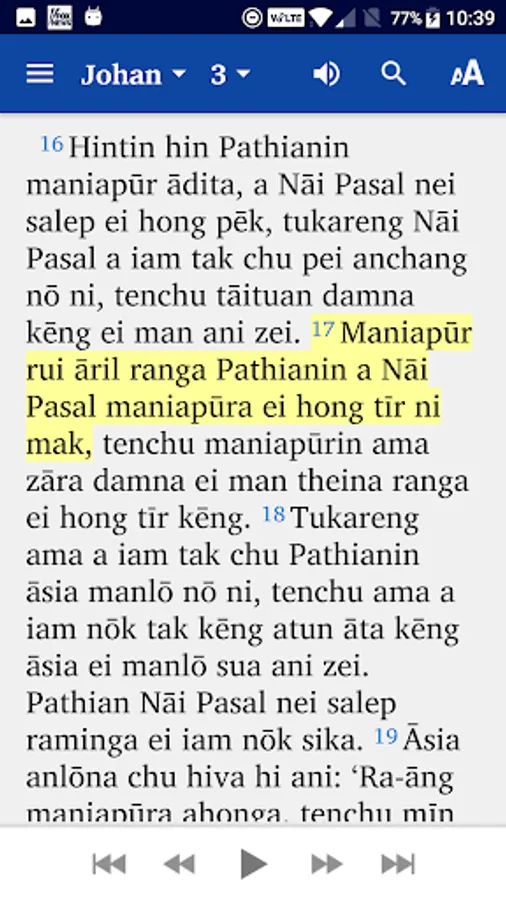Read and meditate on the WORD of GOD in Ranglong using the Ranglong Bible app. The Ranglong Bible app supports almost all Android devices and is absolutely free for you to download and use. The Ranglong Audio Bible has also been synchronized with the text in our app. It will automatically highlight the verse for you when you play the Audio Bible.