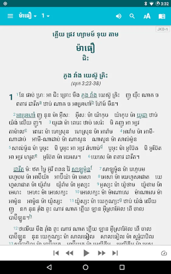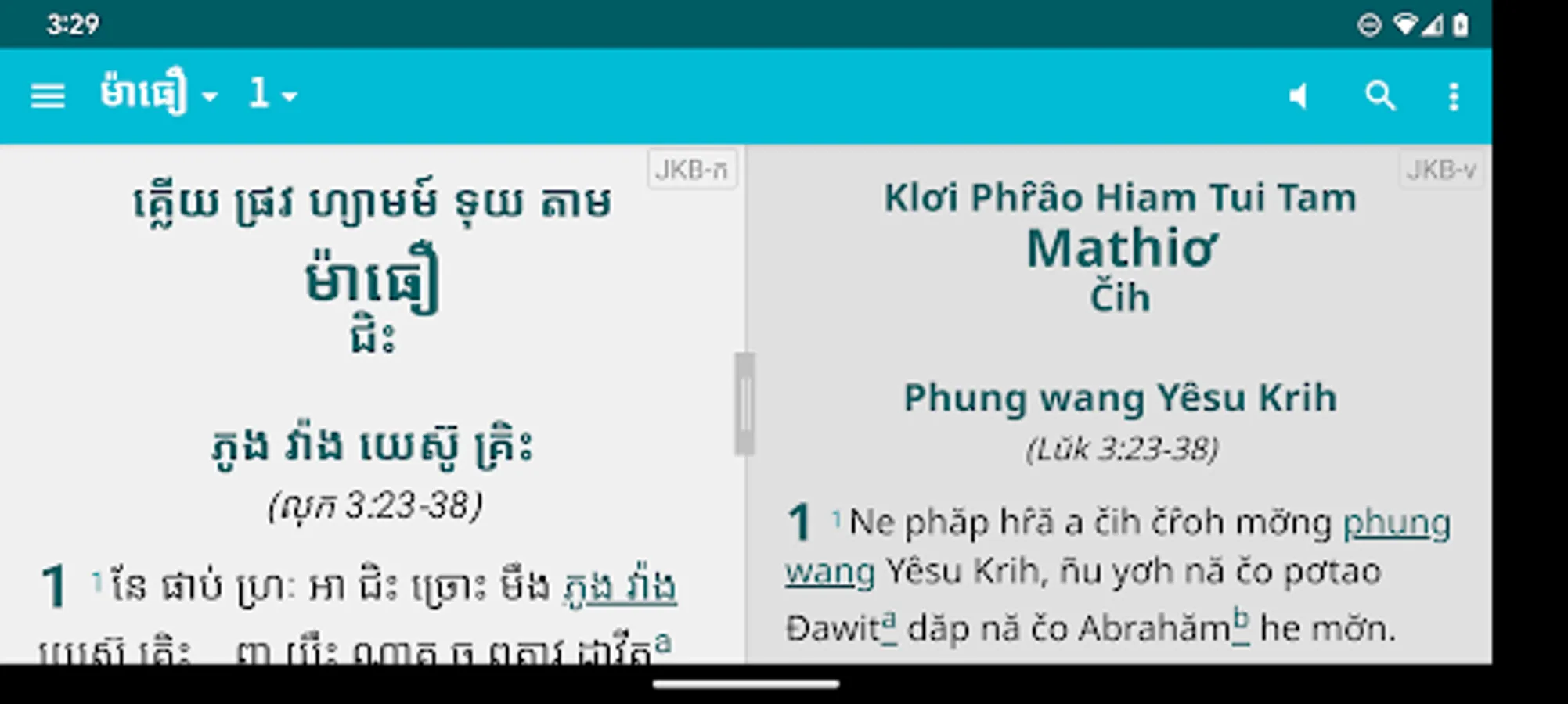 This app is continuously updated as new books of the Bible are translated and checked for accuracy and naturalness. This app includes the translation in Khmer script, Vietnamese script, and audio. It also includes the original Jarai New Testament translation completed by Charlie Long in Vietnam in 1974.