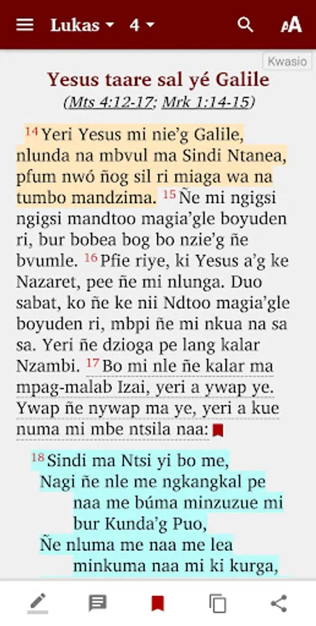 Kwasio Bible Text: © 2019 Wycliffe Bible Translators, Inc.