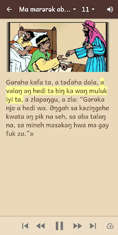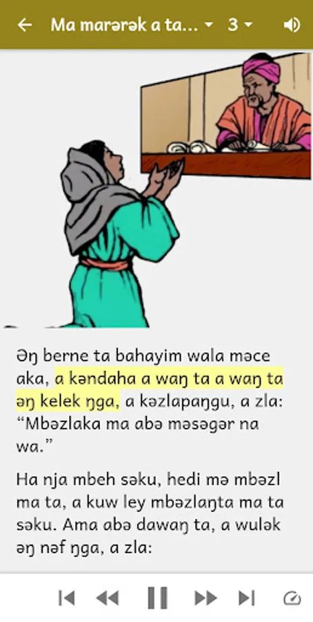 “Ma marərək iyi” is an app of the parables of Jesus (according to the Gospel of Luke) with illustrations and synchronized audio in the Mbudum* language (spoken in the far north region of Cameroon).
