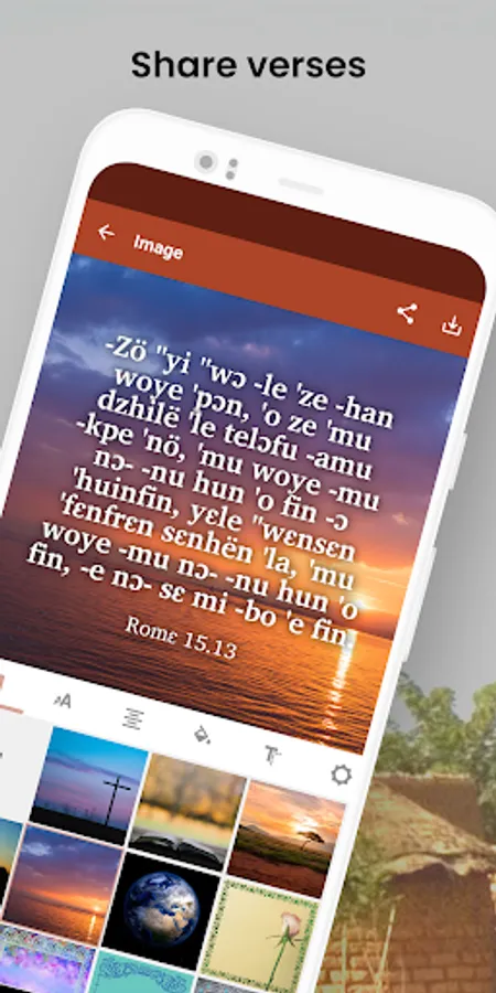 • Share verses with your friends via WhatsApp, Facebook, etc.