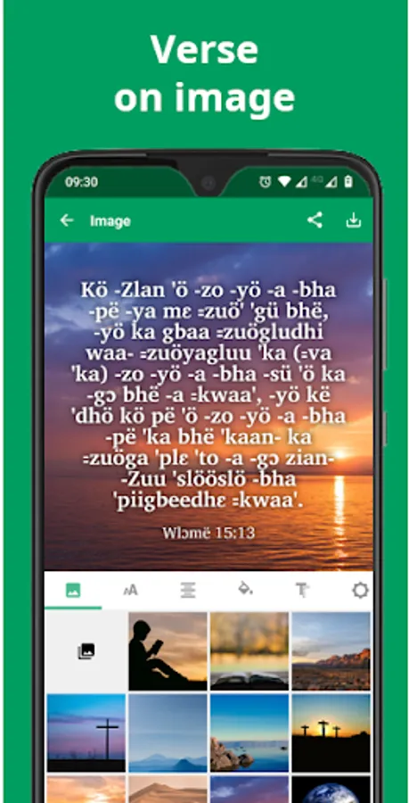 • Share verses with your friends via WhatsApp, Facebook, etc.