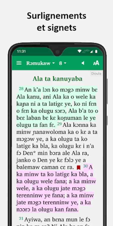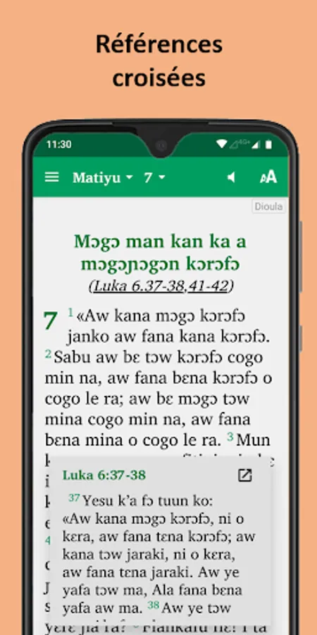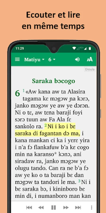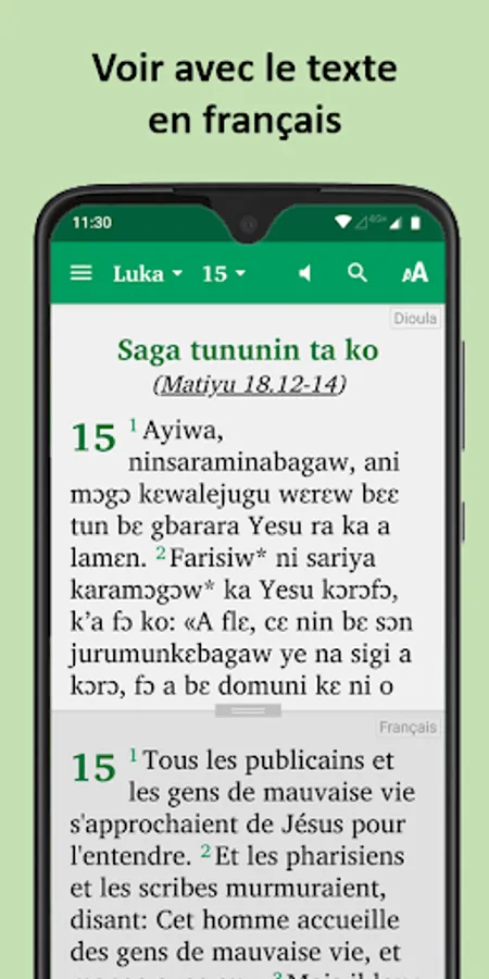 • Read the text and listen to the audio of the New Testament: each phrase is highlighted as the audio is playing