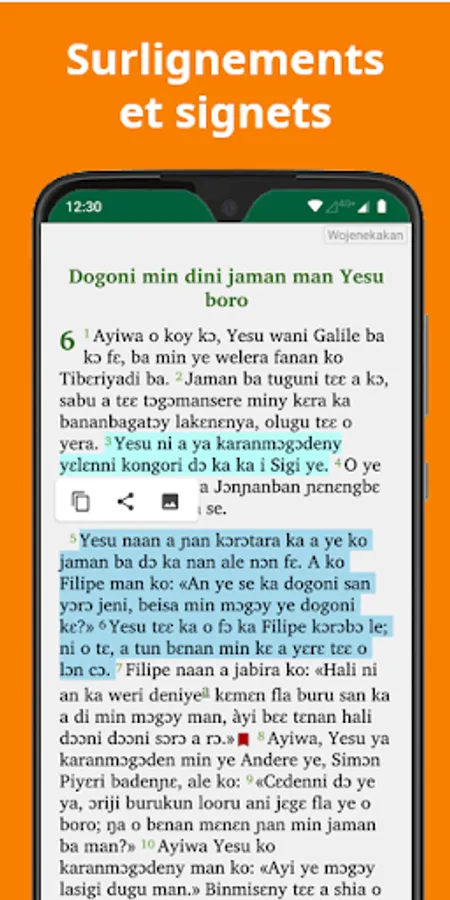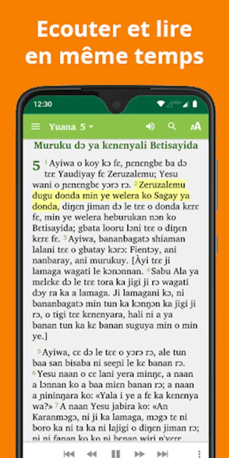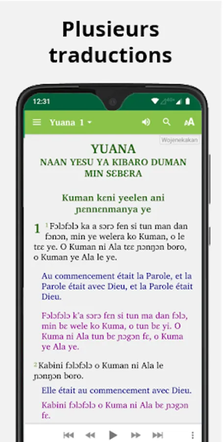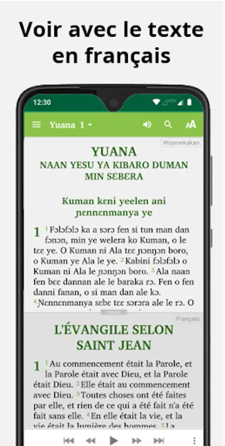 • See the text next to the French Semeur, Louis Segond or Dioula (Jula).