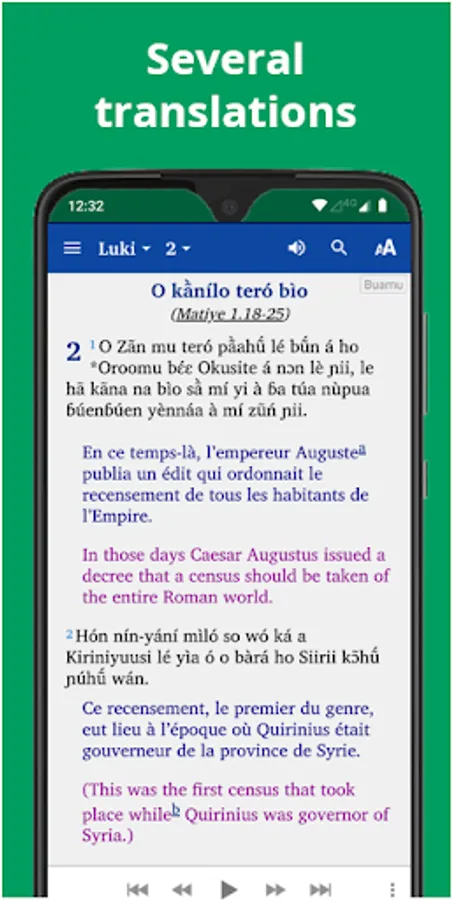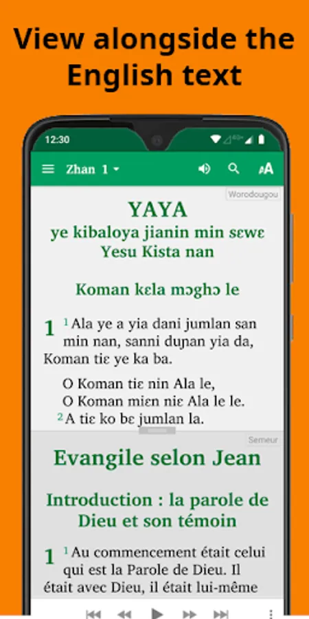 • See the text next to the French Semeur, Louis Segond or Dioula (Jula).