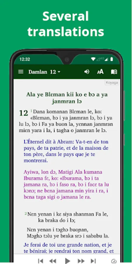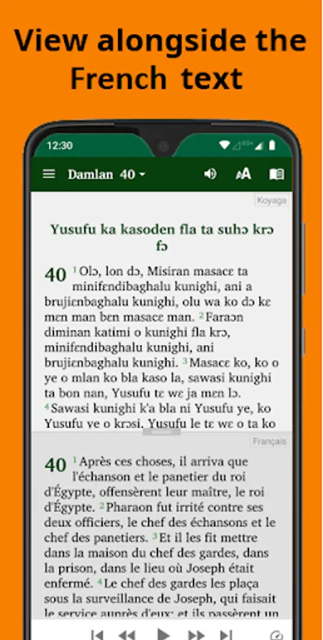 • View text alongside the Dioula and/or French Louis Segond translations