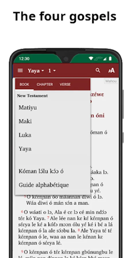 The four gospels of the Bible in the Mahou language [mxx] of Côte d'Ivoire.