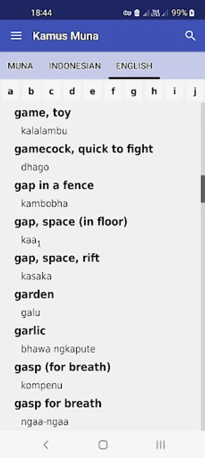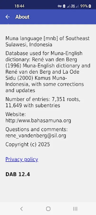 A trilingual Muna-Indonesian-English dictionary of the mnb-Muna language in Southeast Sulawesi, Indonesia, based on two published dictionaries with additions and revisions.