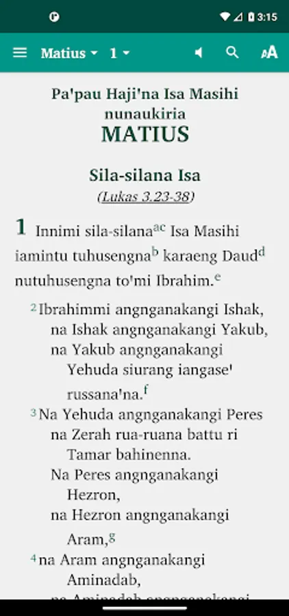 This is the Coastal Konjo language Bible app for Android. The most recent version contains the entire New Testament and portions of the Old Testament (Genesis, Exodus, Joshua, Judges, Ruth, Psalms, Proverbs and Jonah). There is also an audio feature for the entire New Testament. Free download.